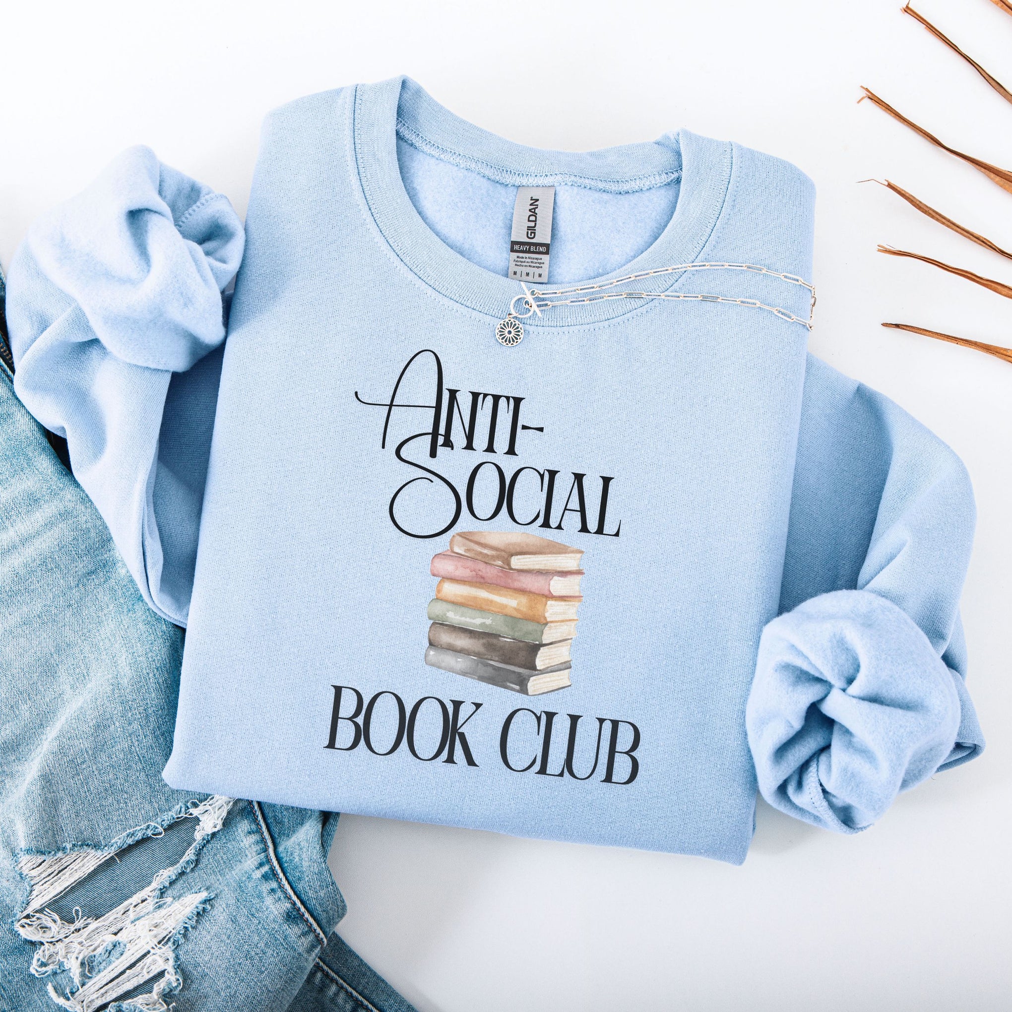Join the coziest club that requires zero meetings—just books. Our Anti-Social Book Club sweatshirt is made for every book lover who would rather be curled up with a good read than making small talk. This trendy antisocial shirt is equal parts cozy and witty, perfect for wearing to your favorite coffee shop, library, or curled up on the couch.