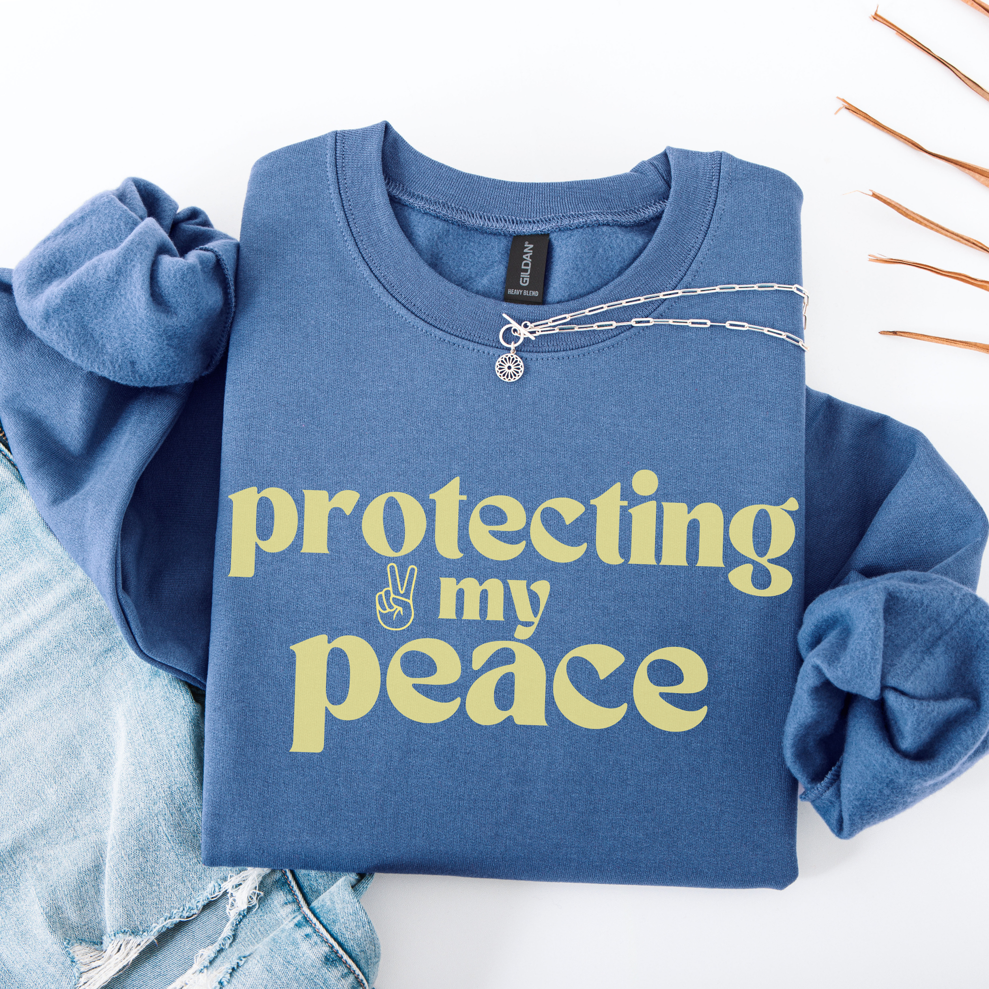 Our Protecting My Peace Sweatshirt is a soft, comfy reminder that boundaries aren’t rude - they’re self-care. Designed for those who crave calm with a side of sass, this crewneck blends comfort and confidence in one classic, made-to-last fit.